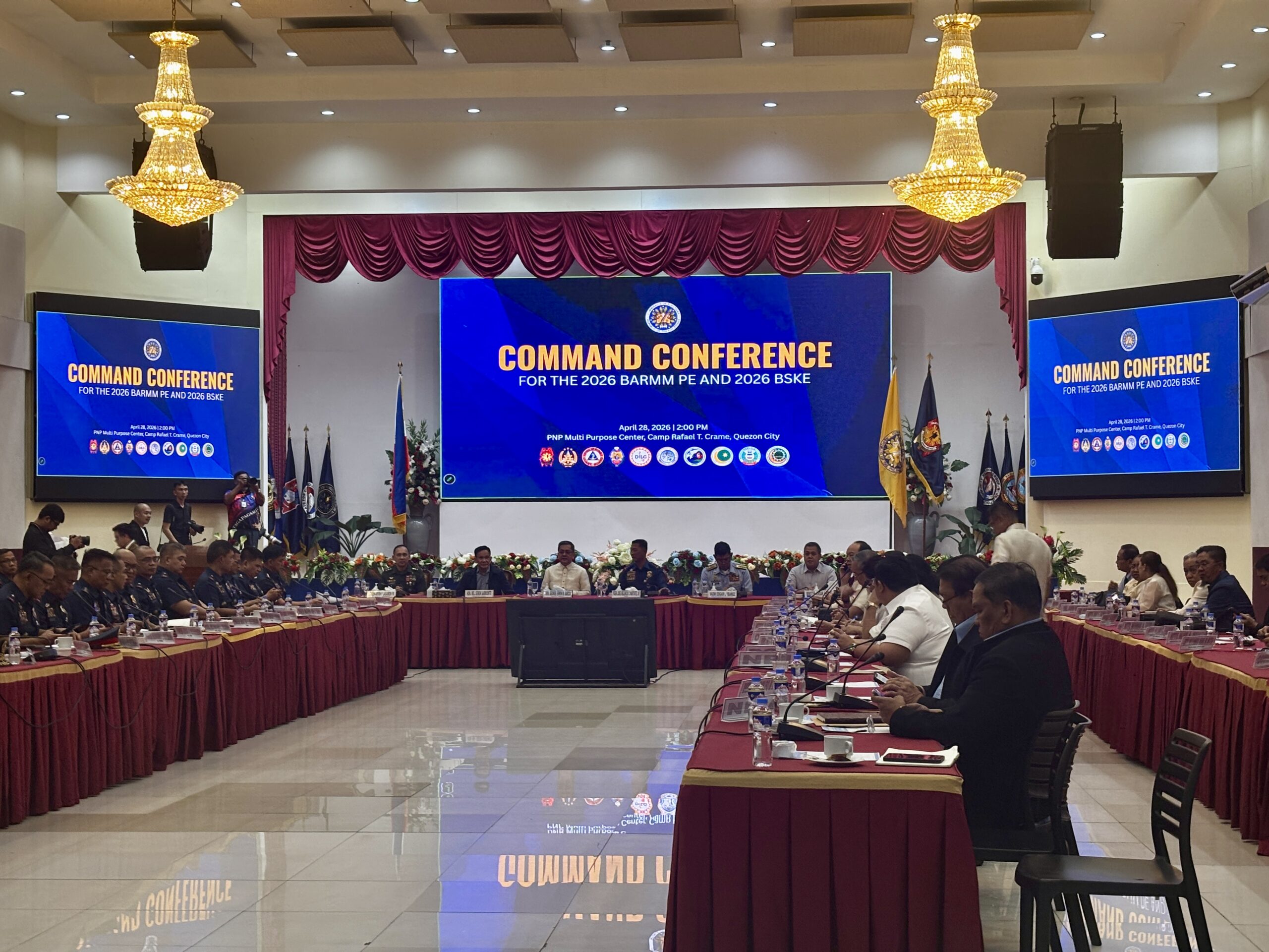 Comelec holds a command conference on April 28 at Camp Crame with law enforcement agencies to strengthen security preparations for the historic first Bangsamoro Parliamentary Elections set on September 14, and the 2026 Barangay and Sangguniang Kabataan Elections scheduled for November 2. (Photo by Andrea Gregorio)